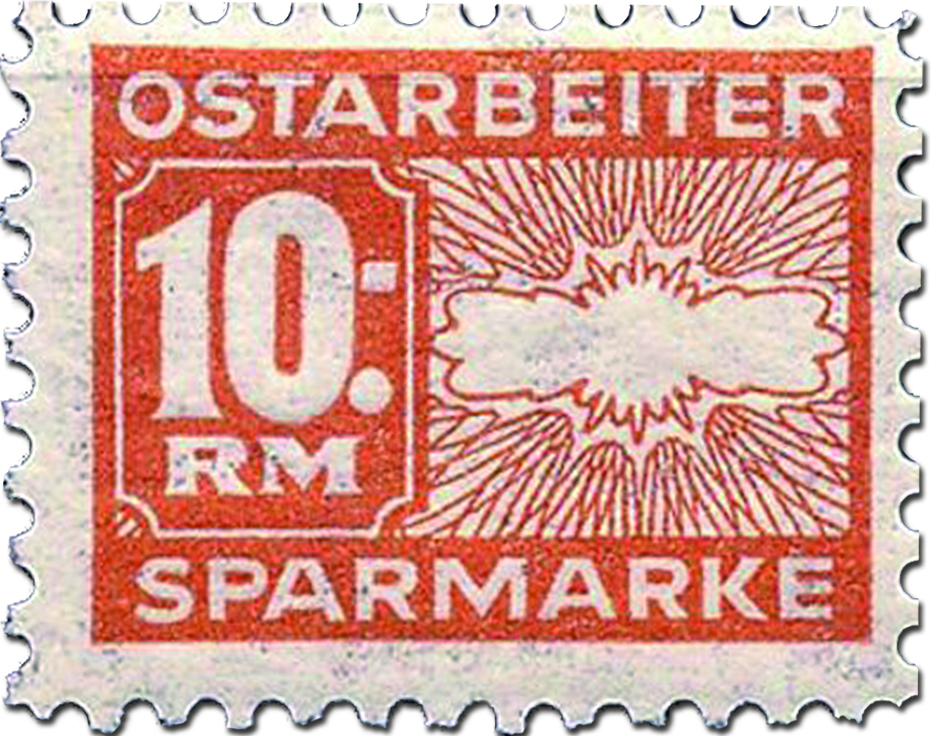 Zivilarbeiter*innen aus der Sowjetunion war das Sparen von Geld sowie Geldüberweisungen ins Ausland verboten. Für sie wurde 1942 das „Ostarbeitersparen“ eingeführt. Pro Monat konnten sie Sparmarken zu einer, drei, fünf oder zehn Reichsmark von ihrem geringen Lohn kaufen und in die Sparkarten einkleben. Zur späteren Berechnung der versprochenen 2,5 Prozent Jahreszinsen wurde auf jeder Sparmarke Monat und Jahr notiert, in dem sie erworben